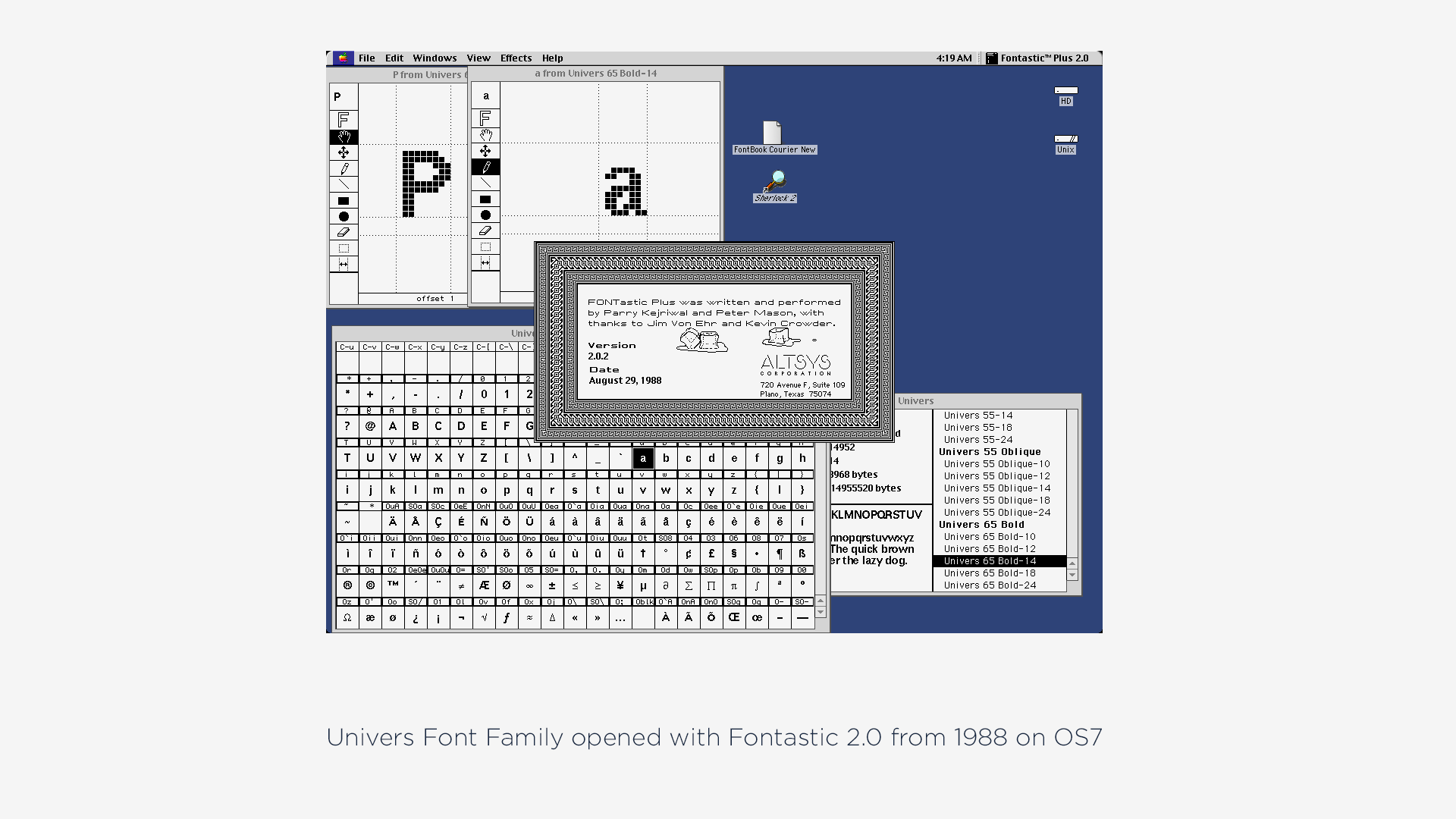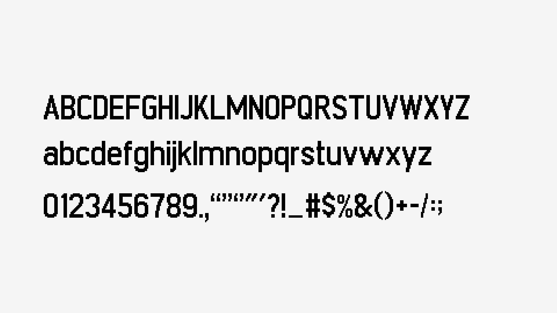We’ve looked for old computer sets, we’ve installed emulators and we’ve found out that a few decades ago you had to create a separate font file for each font sizing you needed and the pixels were set manually one by one for each letter and each correspondent size version. So that’s what we ended doing.