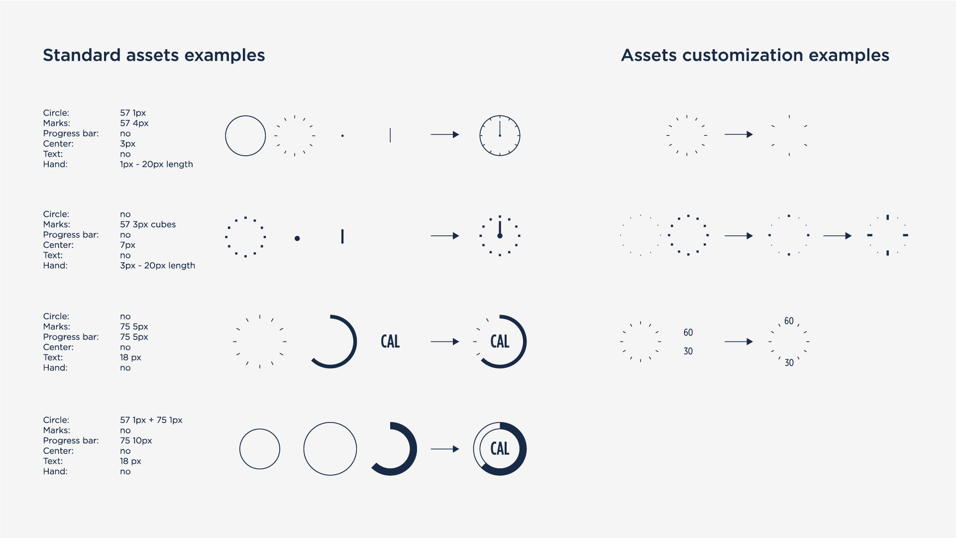 We’ve defined the required assets for building complications, such as dial modules, progress bars, text widgets and so on.