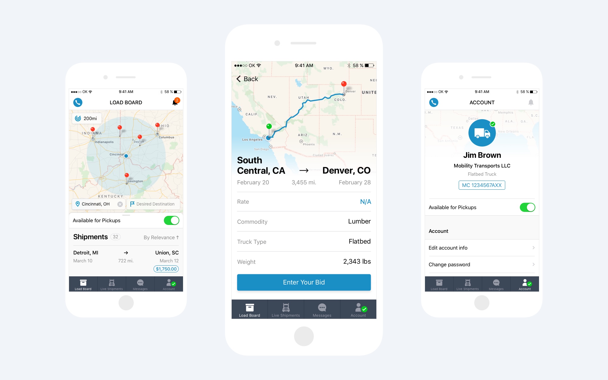 Free transportation management system for small fleets and owner-operators, built with a mobile-first approach, putting the power of booking, tracking and communication in the hands of flatbed truck drivers.